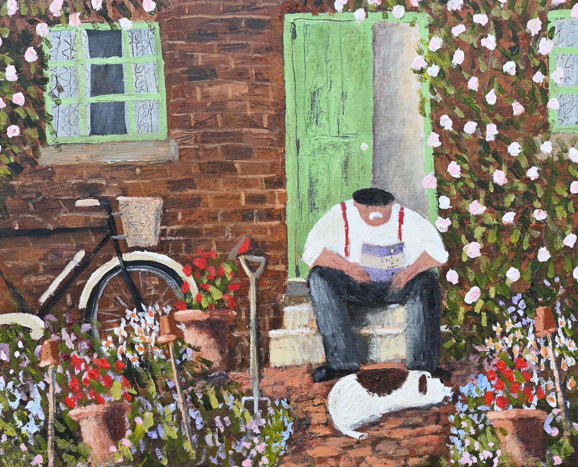 He leans upon the garden gate